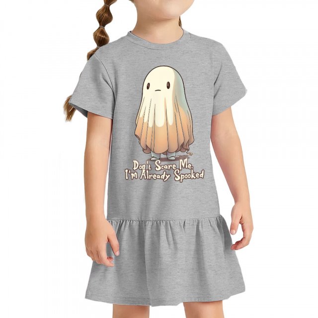 Ghost Print Toddler Rib Dress – Cool Design Girls’ Dress – Cute Design Toddler Dress