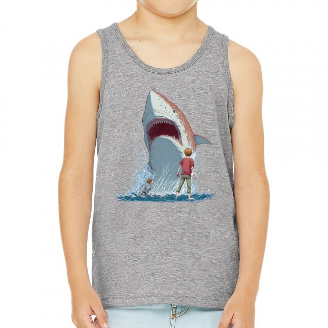 Sharky Says Go Away Kids’ Jersey Tank is no ordinary piece of clothing. Its top-stitched hood and